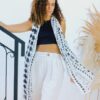 Leichter Schal mit einem steinartigen Druck, inspiriert von der magischen italienischen Stadt Matera, wo zahlreiche Höhlen in den Hang gehauen sind. Hergestellt aus luxuriös weichem, nachhaltigem Bambusgewebe, ist er perfekt für eine zusätzliche Wärmeschicht um den Hals in kühlen Sommernächten. * Hergestellt aus nachhaltigem Bambus * Ultraweich und antistatisch * UV-beständig und antibakteriell * 100 % biologisch abbaubar und mit umweltfreundlichen Farbstoffen gefärbt * Geeignet für empfindliche Haut * 100 cm x 185 cm