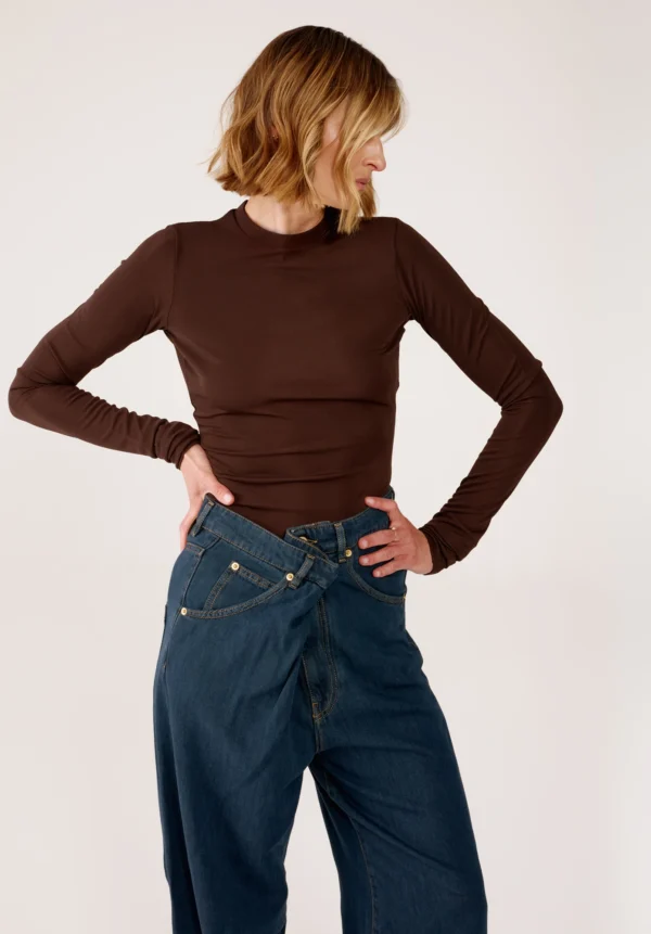 Das langärmlige Shirt „Camren“ von DARKPARK in Dunkelbraun ist ein elegantes Basic-Teil mit schmaler Passform für eine schlanke Silhouette. Der klassische Rundhalsausschnitt macht es vielseitig kombinierbar – ob solo oder im Lagenlook. Ein perfektes Kleidungsstück für kalte Tage.