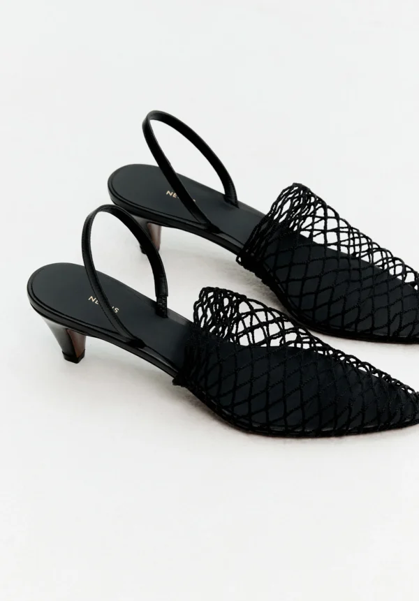 „Acantho“ von NEOUS verkörpert subtile sommerliche Eleganz. Ein zart gewebtes Mesh ziert die verlängerte Zehenpartie und verleiht der Silhouette eine transparente, sinnliche Note. Der niedrige, lederbezogene Kegelabsatz rundet das raffinierte Design dieser Sandale ab, das durch sorgfältige Verarbeitung besticht. Die Acantho Slingbacks bieten eine moderne Balance aus Leichtigkeit und dezentem Luxus – die perfekte Wahl für jeden eleganten Anlass an warmen Tagen.