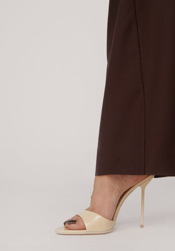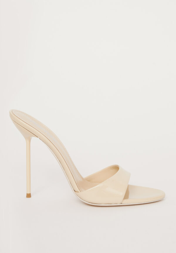 Die sinnlichen und raffinierten Stiletto-Mules „Lidia“ von PARIS TEXAS verkörpern moderne Eleganz mit einem kühnen Twist. Gefertigt aus glänzendem Lackleder, besticht die offene Zehenpartie durch ein edles, luxuriöses Finish, das bei jedem Schritt das Licht einfängt. Der schlanke, bezogene Absatz verlängert optisch das Bein und betont die anmutige Fußform. Perfekt für Abendveranstaltungen oder elegante Anlässe – diese Mules sind ein Statement von mühelosem Glamour und zeitgenössischer Anziehungskraft.