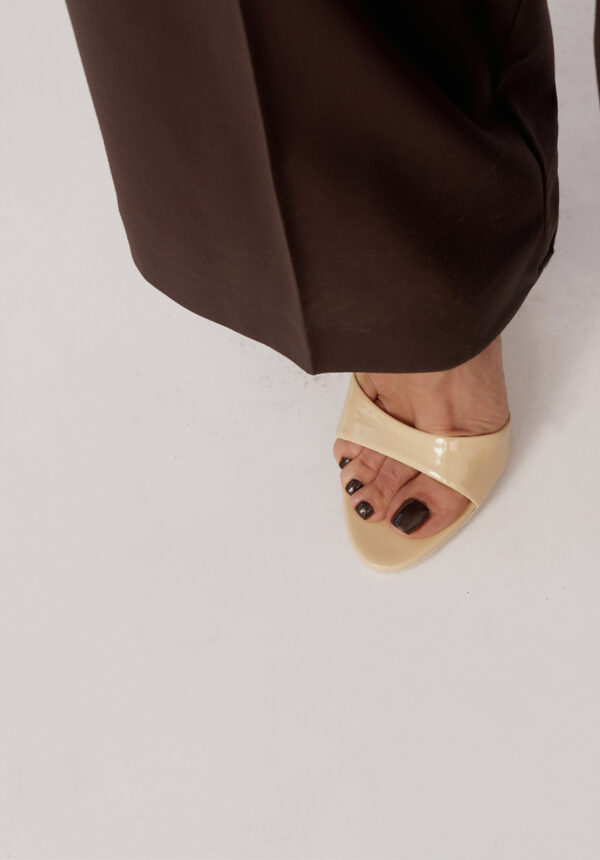 - Lackleder-Mules mit hohem Absatz