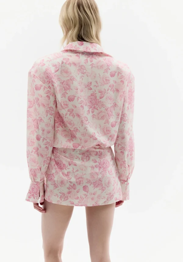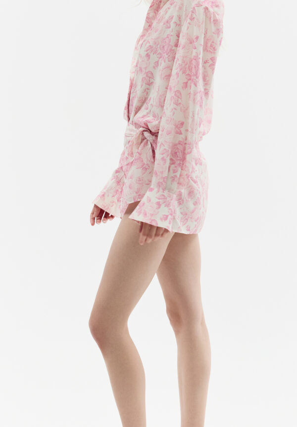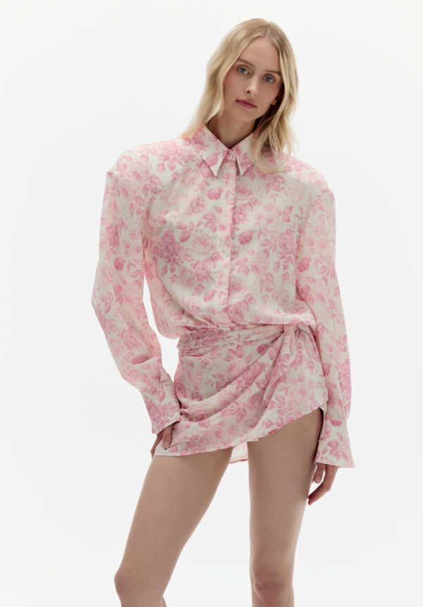 Der rosafarbene Rock ROWEN ROSE ist eine raffinierte Mischung aus Weiblichkeit und Eleganz mit sommerlicher Leichtigkeit. Gefertigt aus zartem Georgette mit romantischem Blumenmuster, besticht er durch einen asymmetrischen Schnitt, der durch einen raffinierten Fall die Beine dezent in Szene setzt. Sanfte Falten verleihen dem Rock eine dynamische und zugleich luftige Note. Die zarten Rosatöne des Musters harmonieren perfekt mit dem cremefarbenen Hintergrund und schaffen eine Komposition von außergewöhnlicher Finesse. Dieser Rock ist ideal für Frauen, die eine unerwartete Kombination aus Romantik und moderner, ausdrucksstarker Form schätzen.