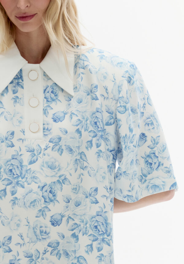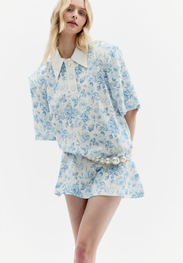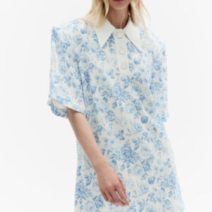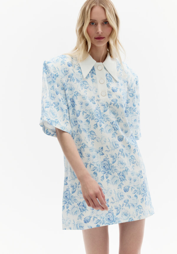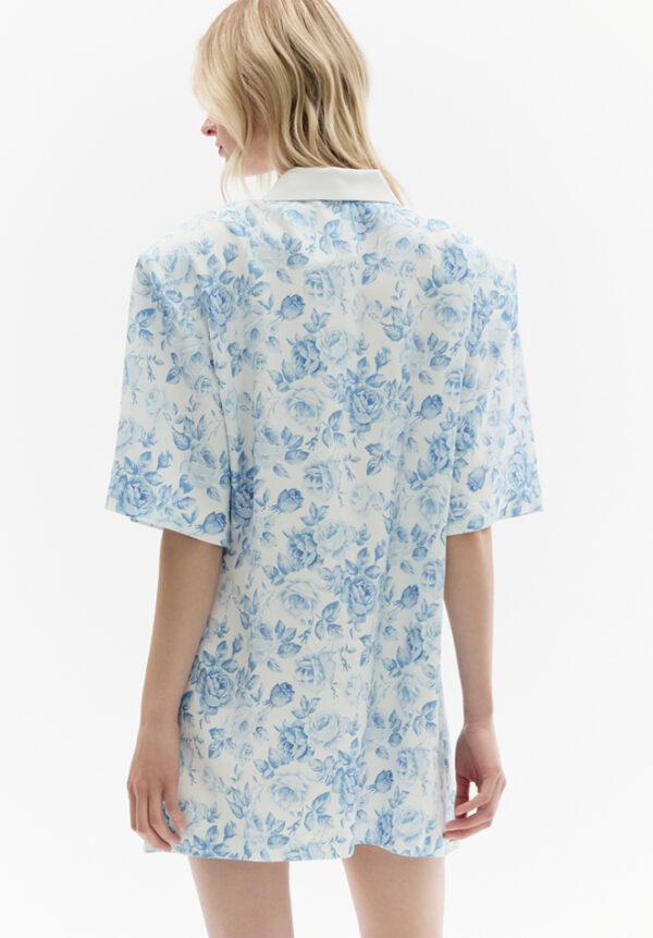 Dieses Minikleid von ROWEN ROSE bezaubert mit seinem subtilen Charme romantischer Eleganz. Gefertigt aus zartem Stoff mit einem verträumten Muster aus kleinen blauen Blüten auf hellem Grund, erinnert es an unbeschwerte Sommertage. Die Oversize-Silhouette mit dem markanten Kragen und den kurzen, locker fallenden Ärmeln verleiht ihm eine mühelose Leichtigkeit. Der minimalistische Mini-Schnitt mit gerader Linie vereint die feminine Note des Musters perfekt mit moderner Lässigkeit. Dieses Kleid ist die ideale Wahl für sonnige Stadtbummel und Urlaubsreisen – es vereint Komfort mit subtiler Raffinesse.