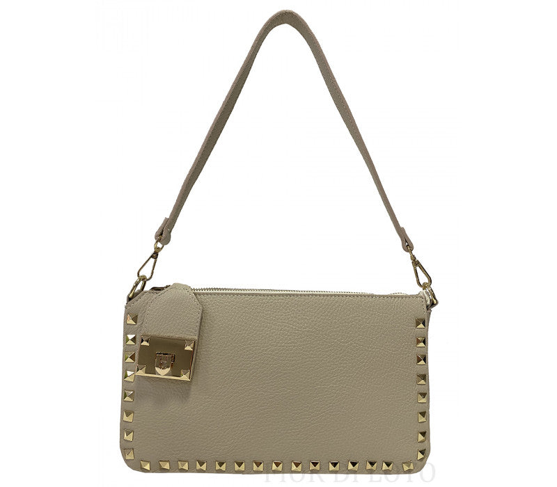 Schultertasche aus echtem genarbtem Leder, hergestellt in Italien