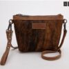 Der verstellbare Schultergurt ist ebenfalls aus 100 % echtem, pflanzlich gegerbtem Rindsleder gefertigt und mit einem handpunzierten Muster versehen.