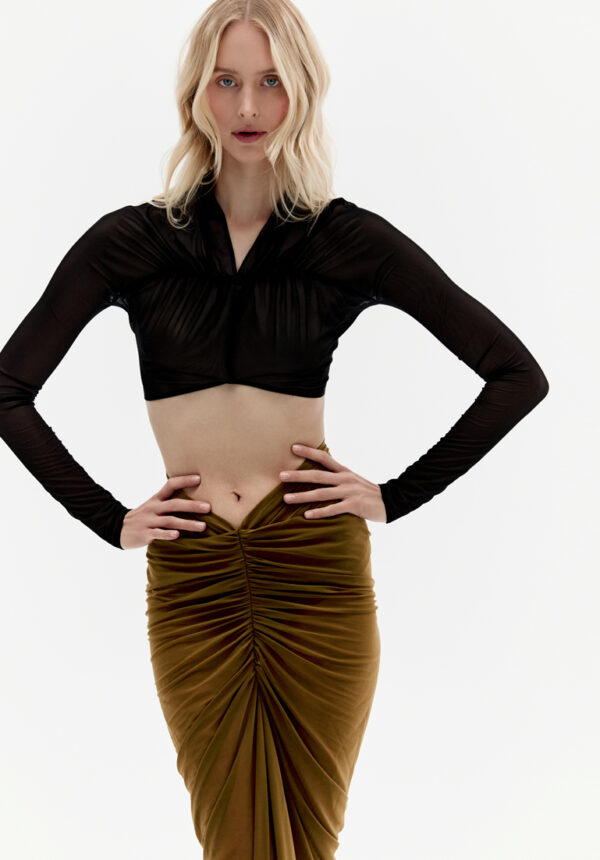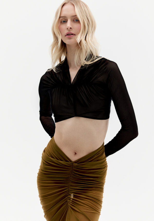 V-Ausschnitt Cropped-Top mit geraffter Vorderseite