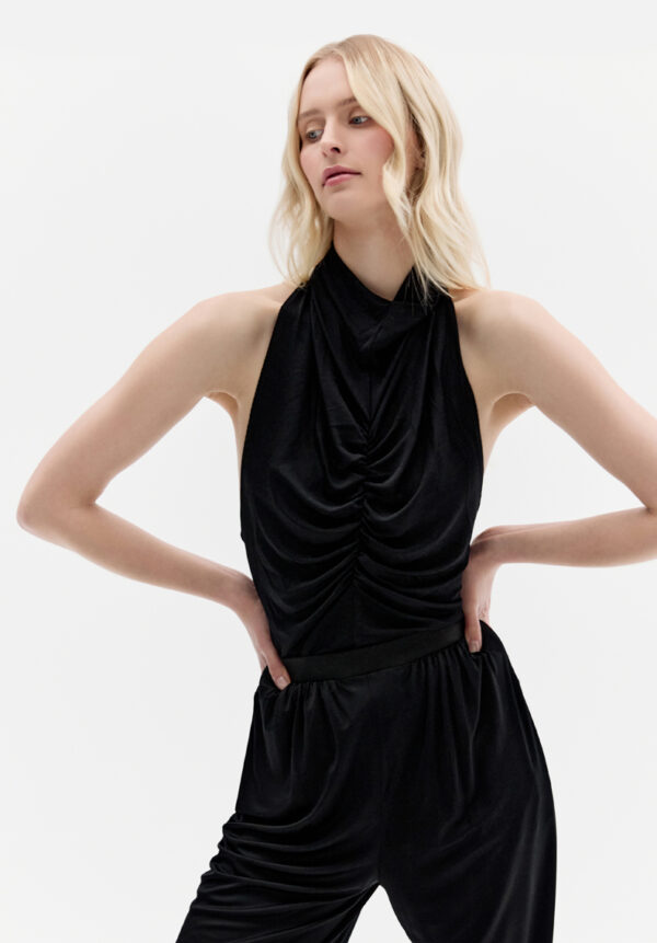 Sinnlich und ausdrucksstark – dieses geraffte Neckholder-Top von ATLEIN in zeitlosem Schwarz vereint eleganten Minimalismus mit markantem Design. Der offene Rücken verleiht eine gewagte Note, während die fließende Raffung den Körper mit müheloser Raffinesse formt. Die perfekte Wahl für Frauen, die sowohl Stärke als auch Grazie verkörpern.