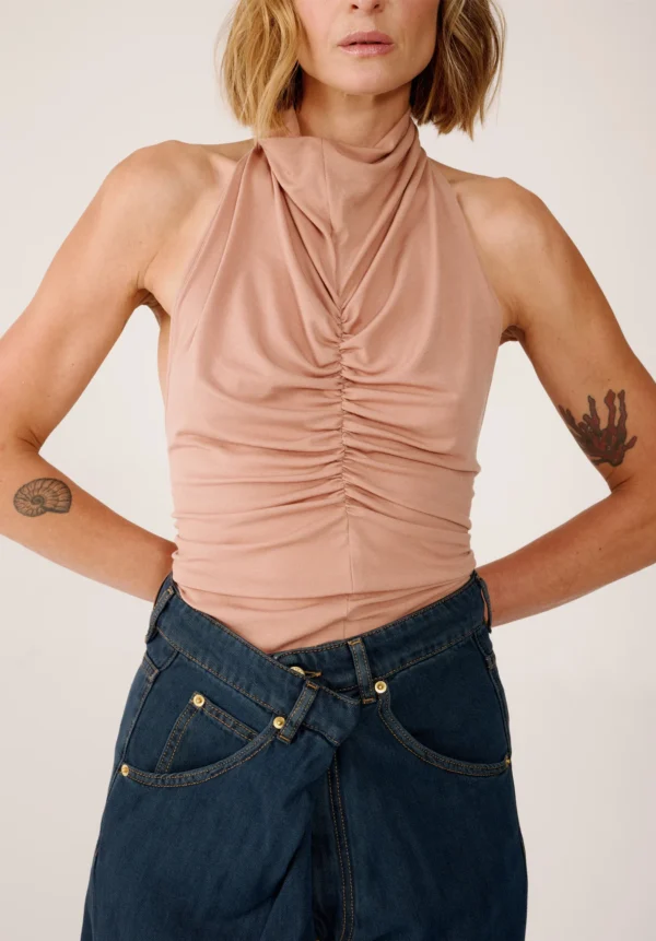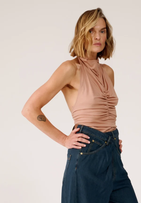 Dieses ausdrucksstarke und sinnliche Neckholder-Top mit Raffung von ATLEIN besticht durch einen vielseitigen Pastellrosa-Ton, der eleganten Minimalismus mit einem mutigen, modernen Design verbindet. Der offene Rücken verleiht einen gewagten Akzent, während die fließenden Raffungen an der Vorderseite den Körper auf wunderschöne Weise formen und mühelose Raffinesse ausstrahlen. Eine ideale Wahl für Frauen, die Stärke und Anmut zugleich verkörpern.